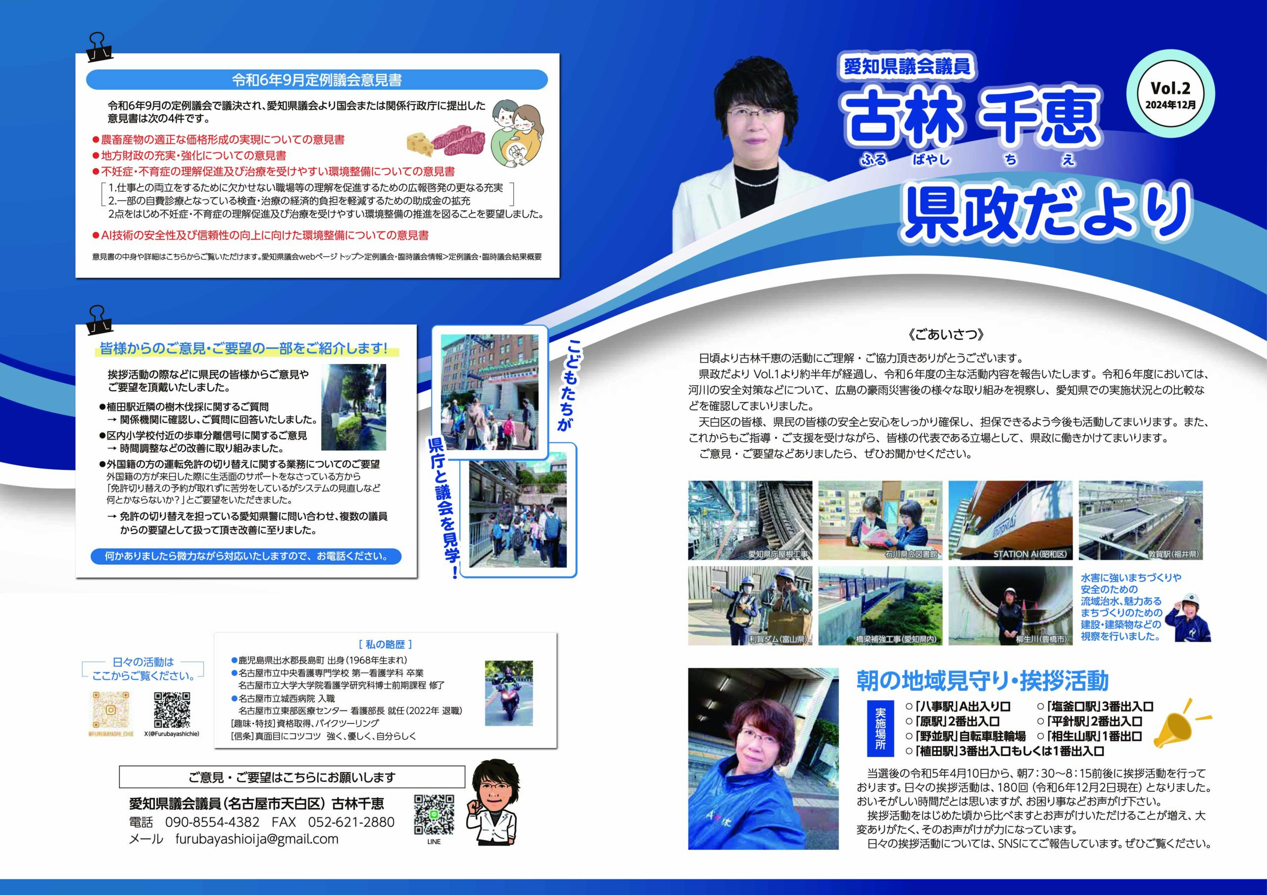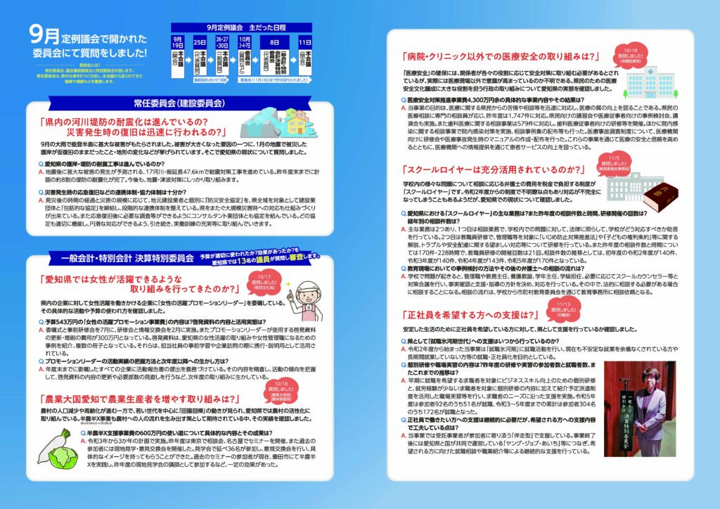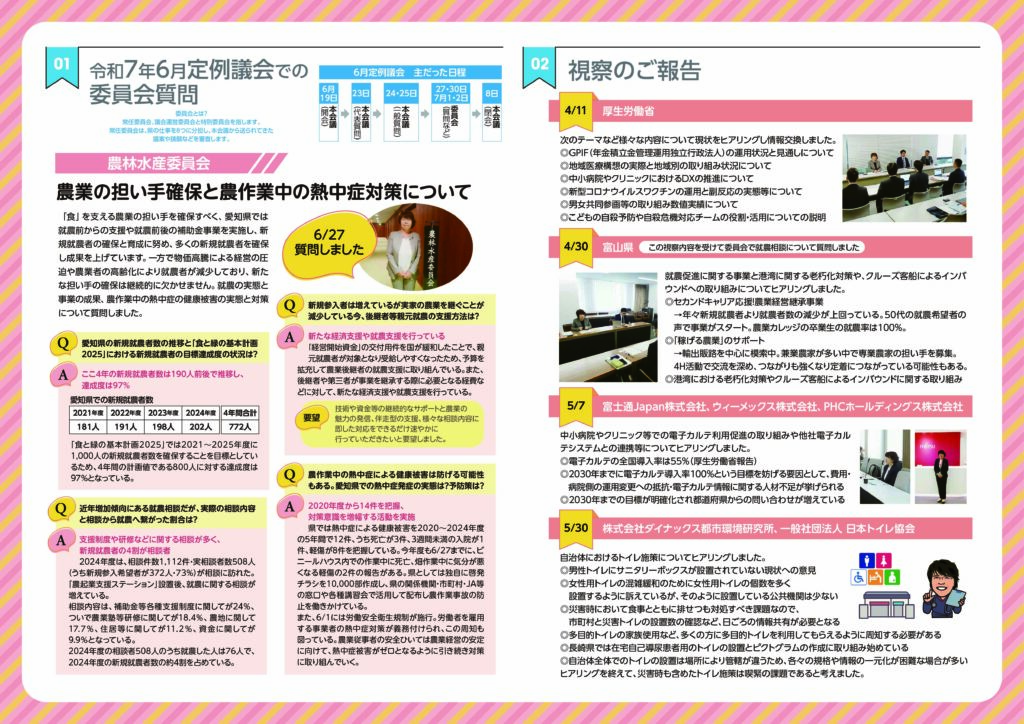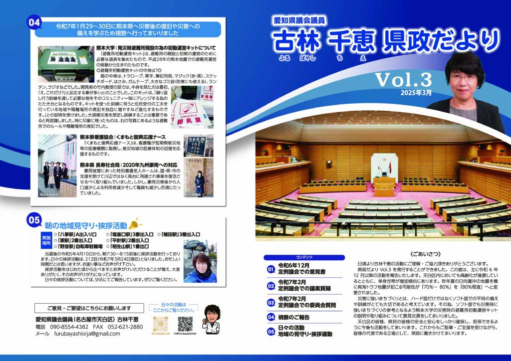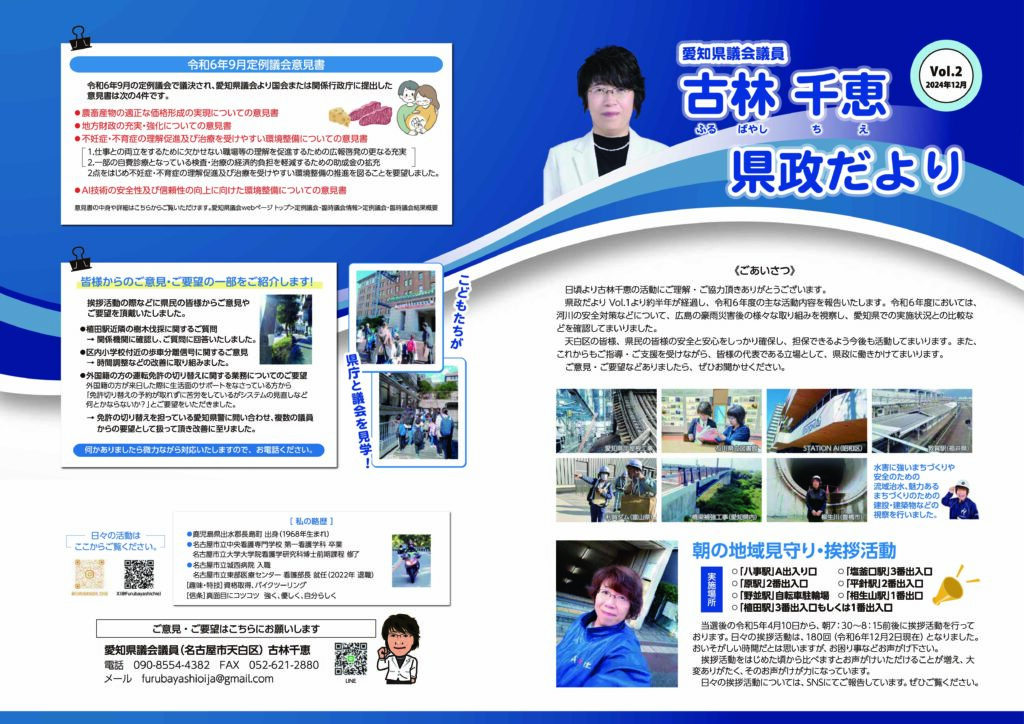日頃より私の活動にご理解・ご協力いただきありがとうございます。定例会のご報告と視察のご報告、また、日々の私の活動をまとめておりますので、ご覧いただけますと嬉しく思います。