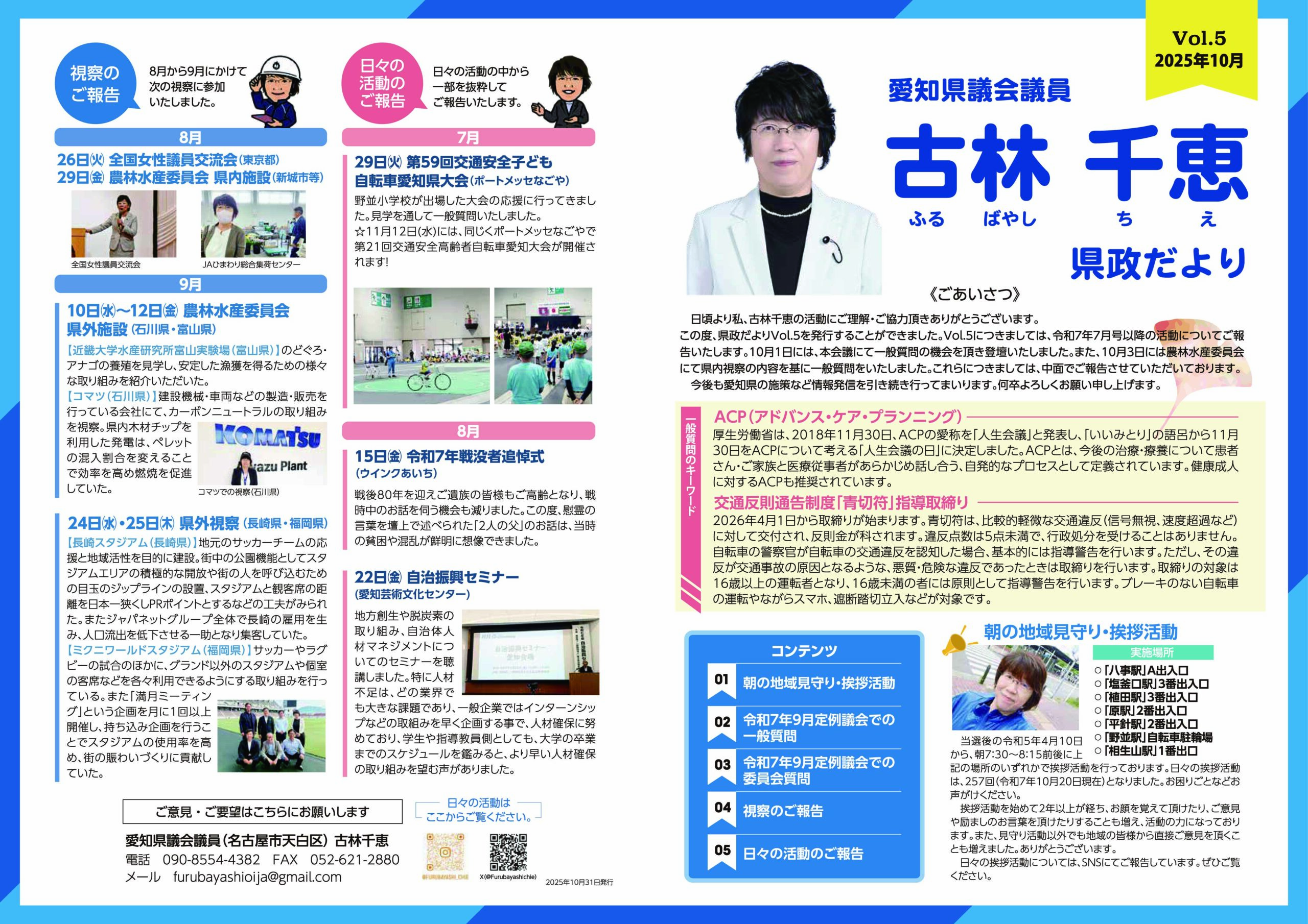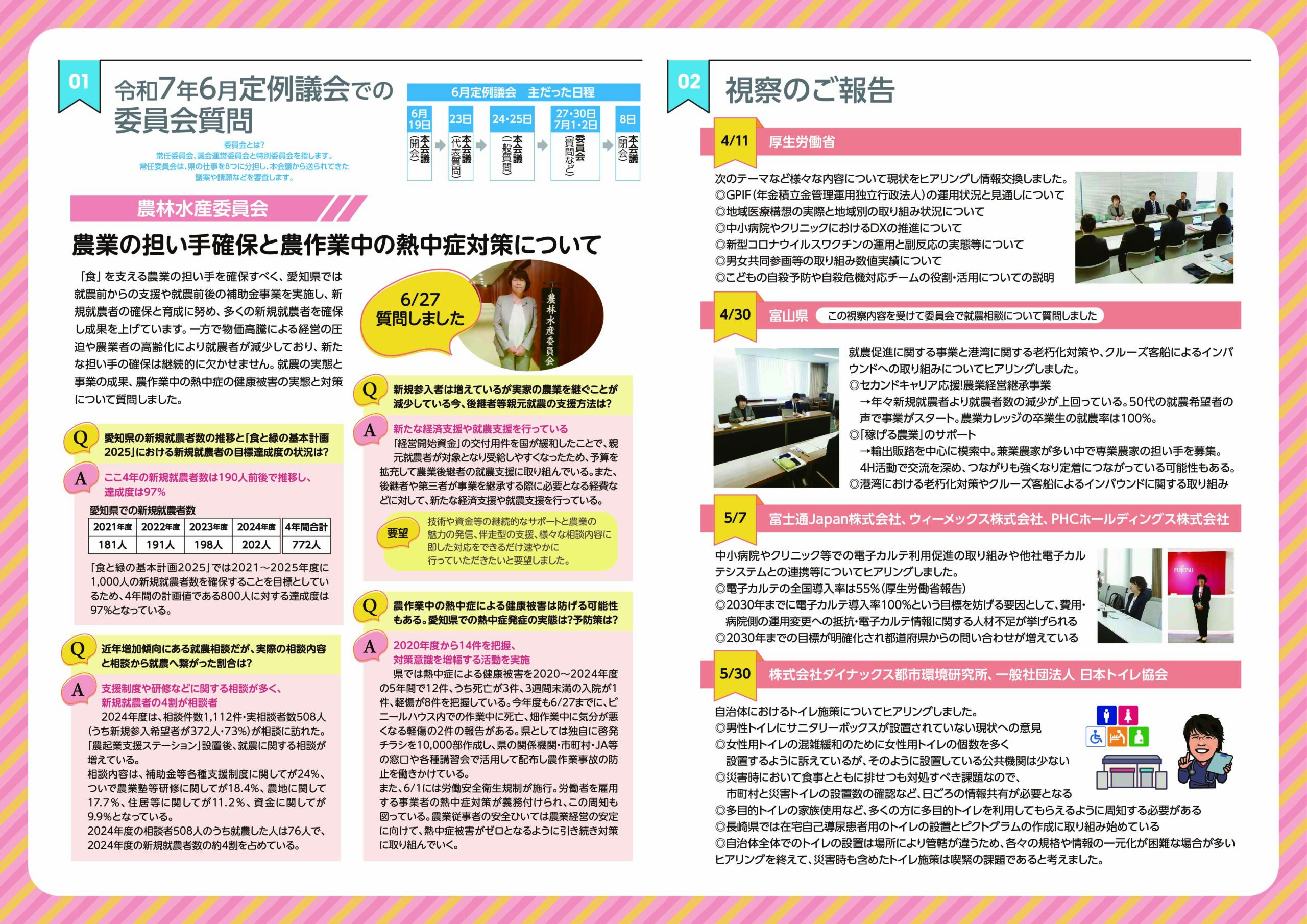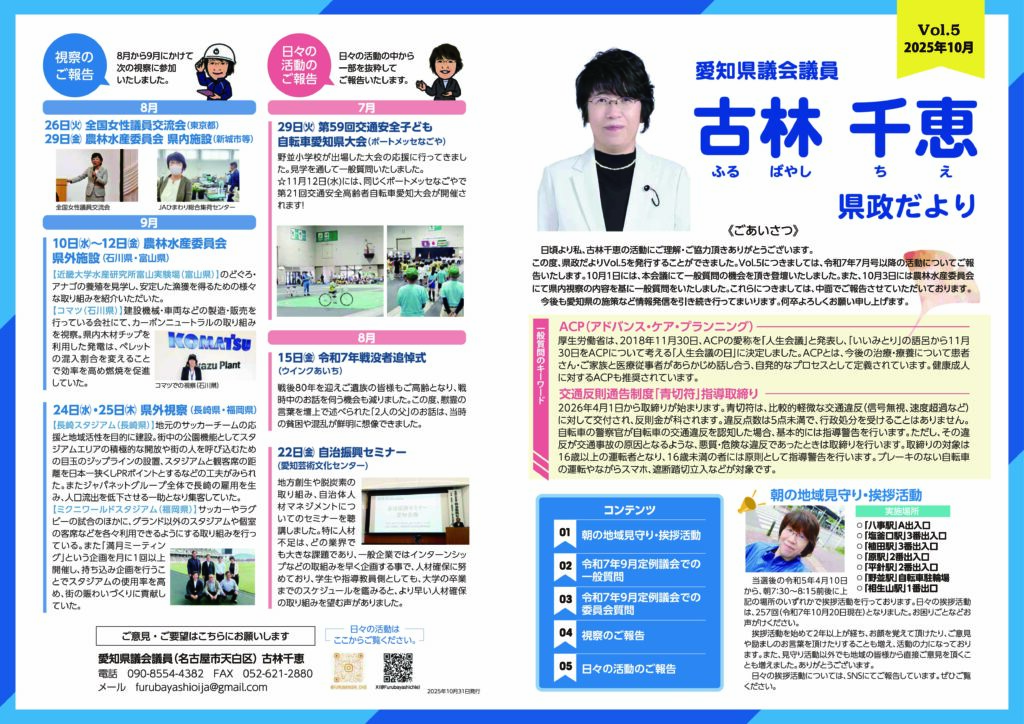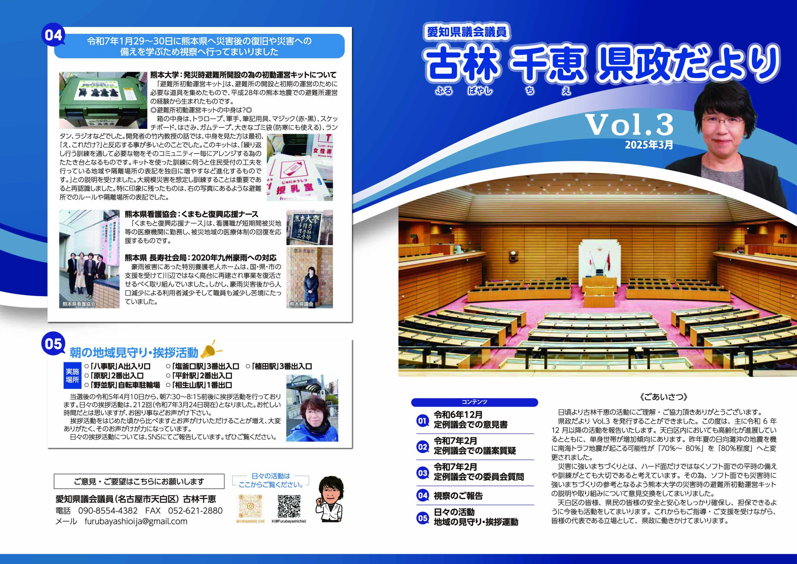 日頃より私の活動にご理解・ご協力いただきありがとうございます。定例会のご報告と視察のご報告、また、日々の私の活動をまとめておりますので、ご覧いただけますと嬉しく思います。